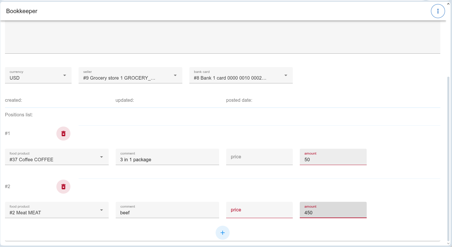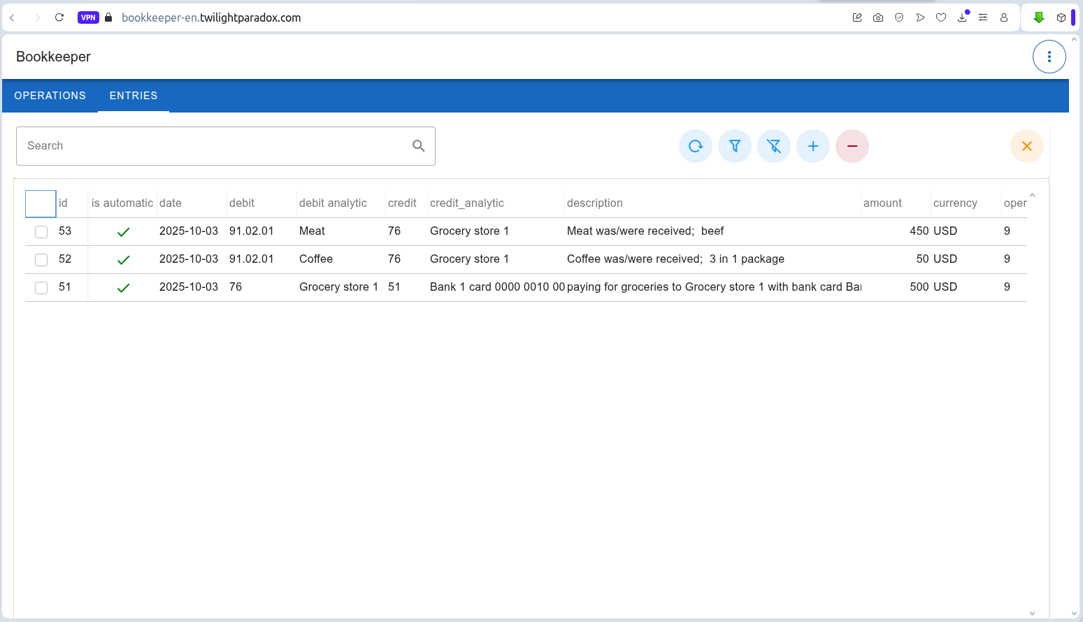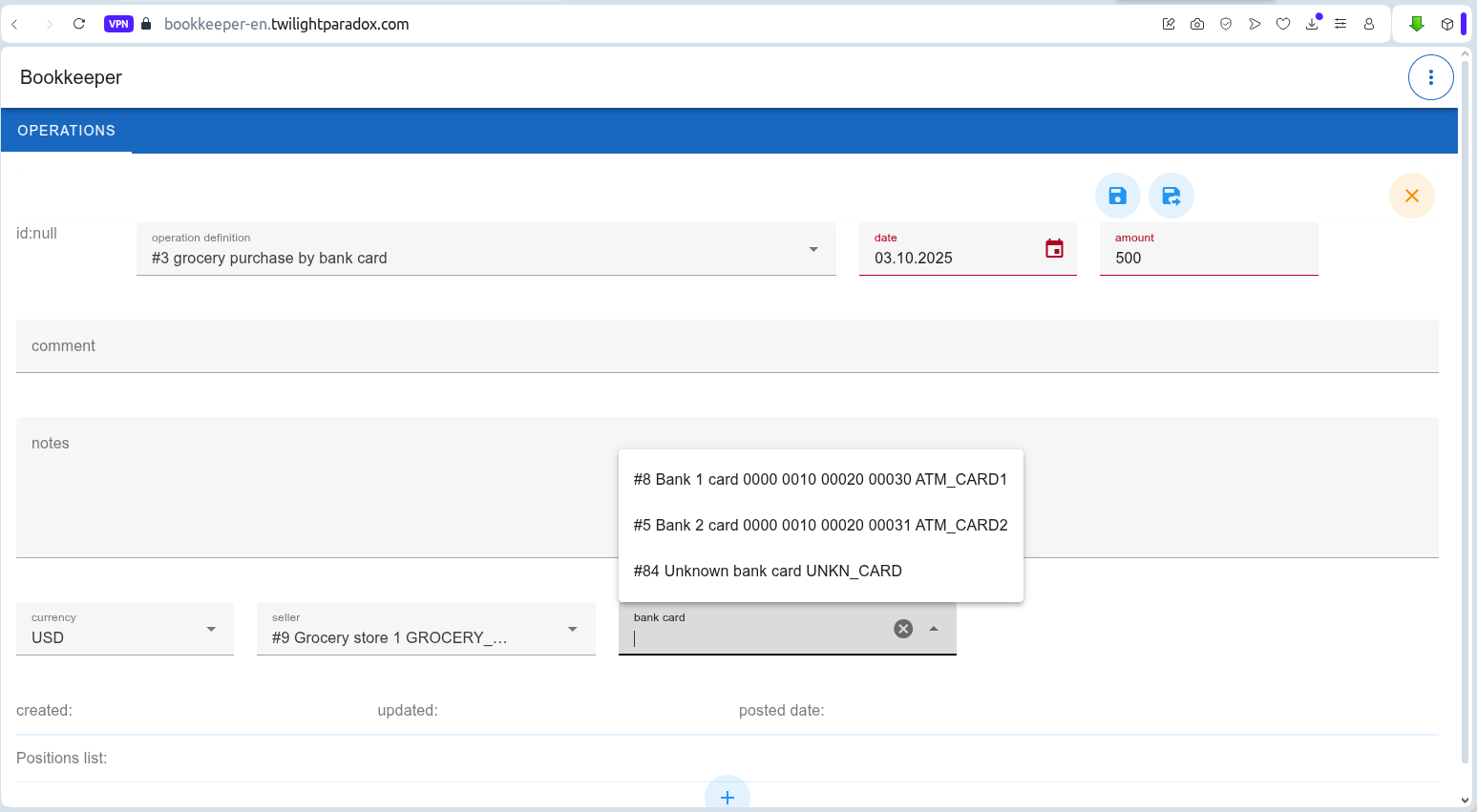 Now let’s create an operation — for example, buying groceries using a bank card.