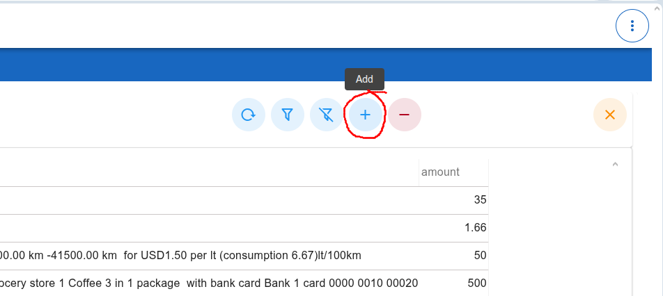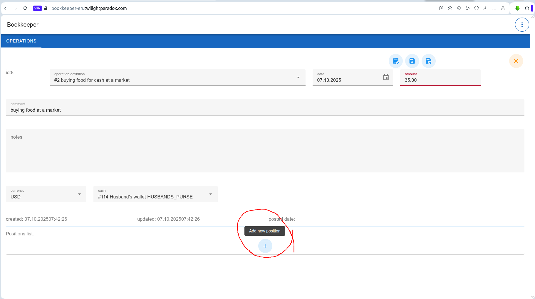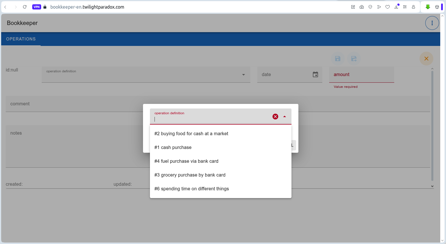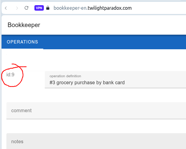 Now let’s create an operation — for example, buying groceries using a bank card.