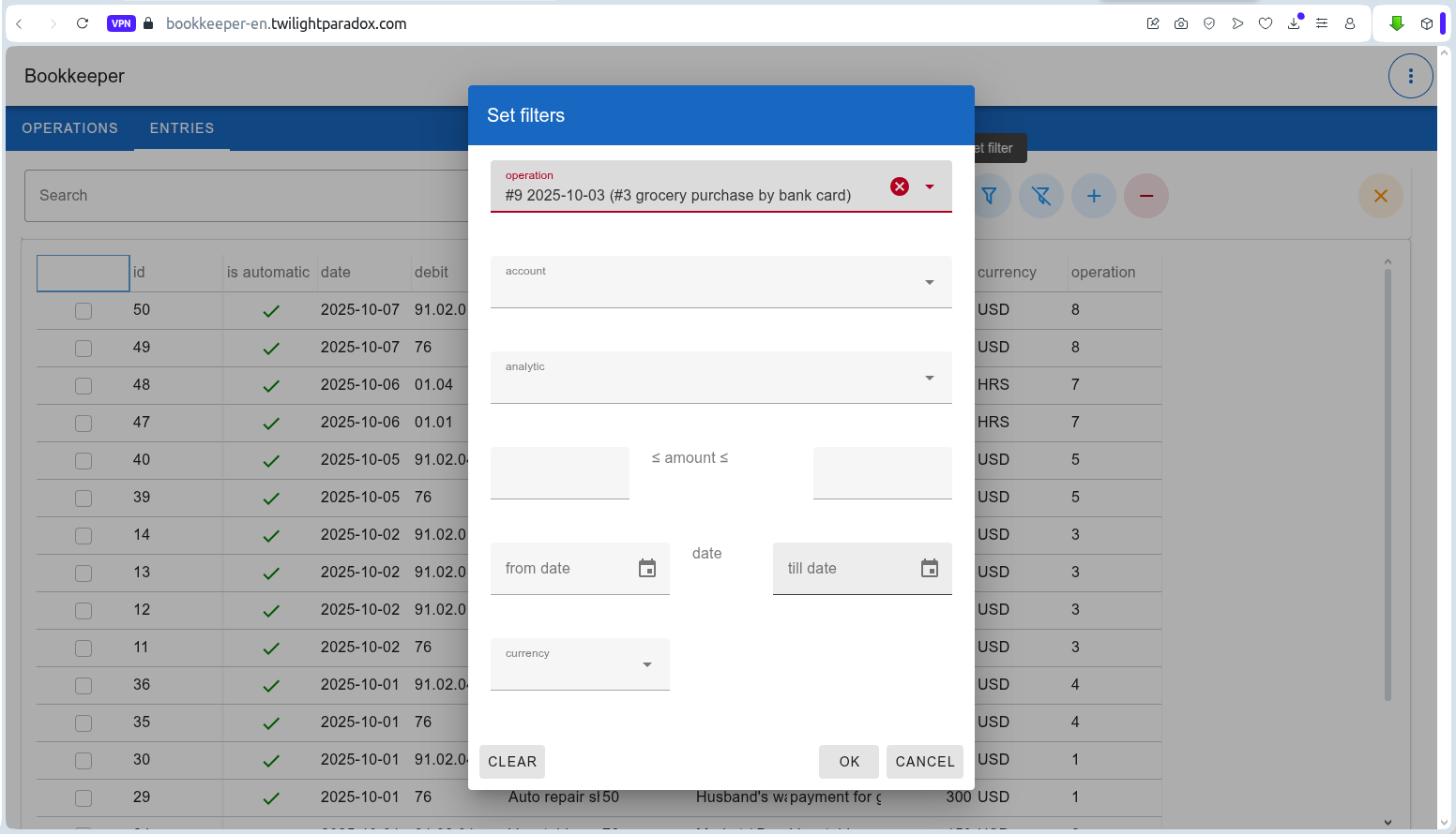 After saving, each operation receives its own unique ID number, which can later be used to filter the automatically created entries related to it.