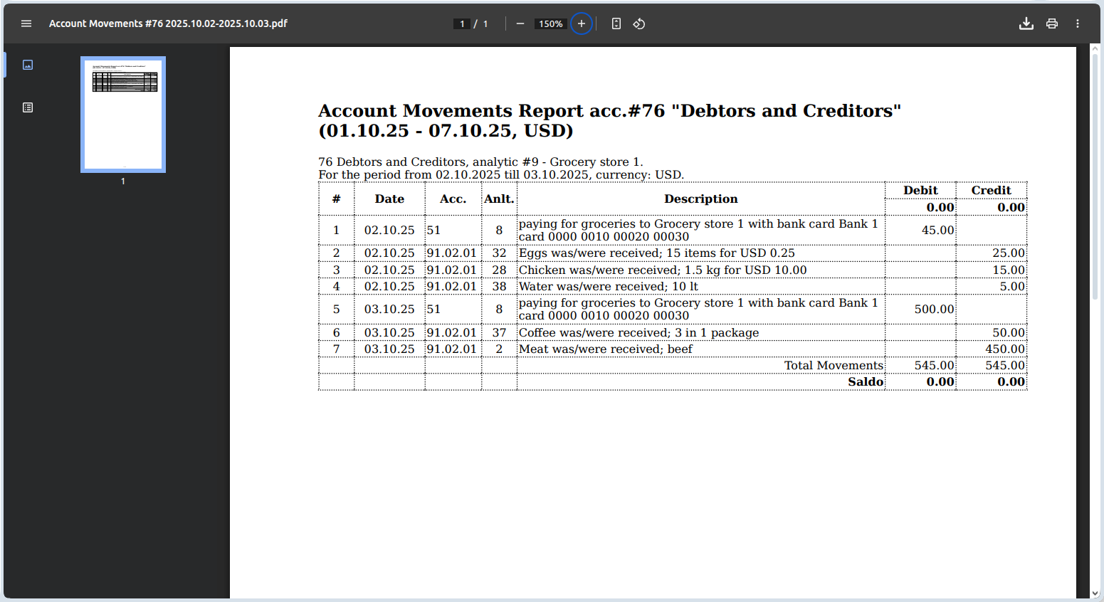 Now that we have a saved operation, we can automatically create accounting entries. These entries appear in reports, so until the operation is posted, they won’t be included in reports.